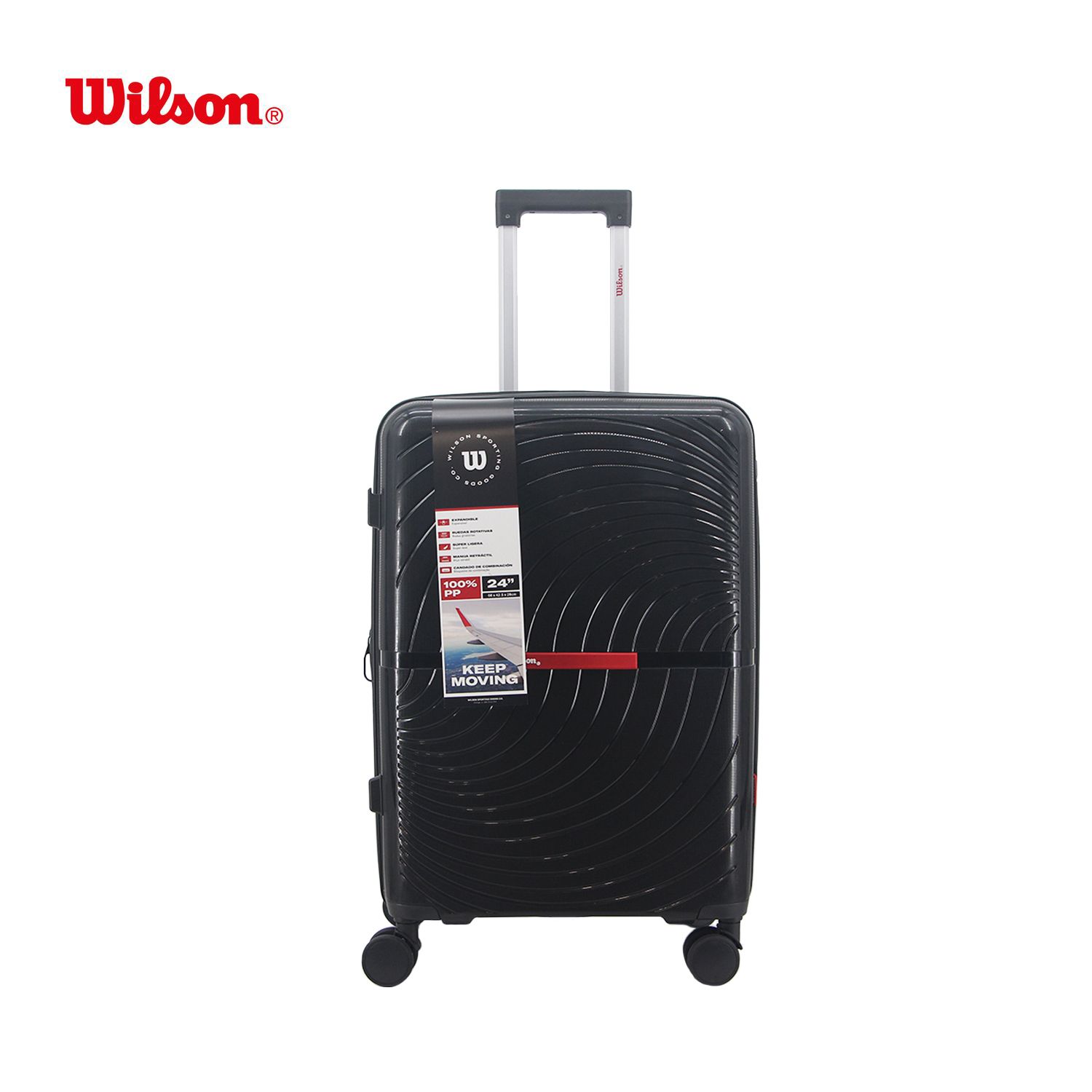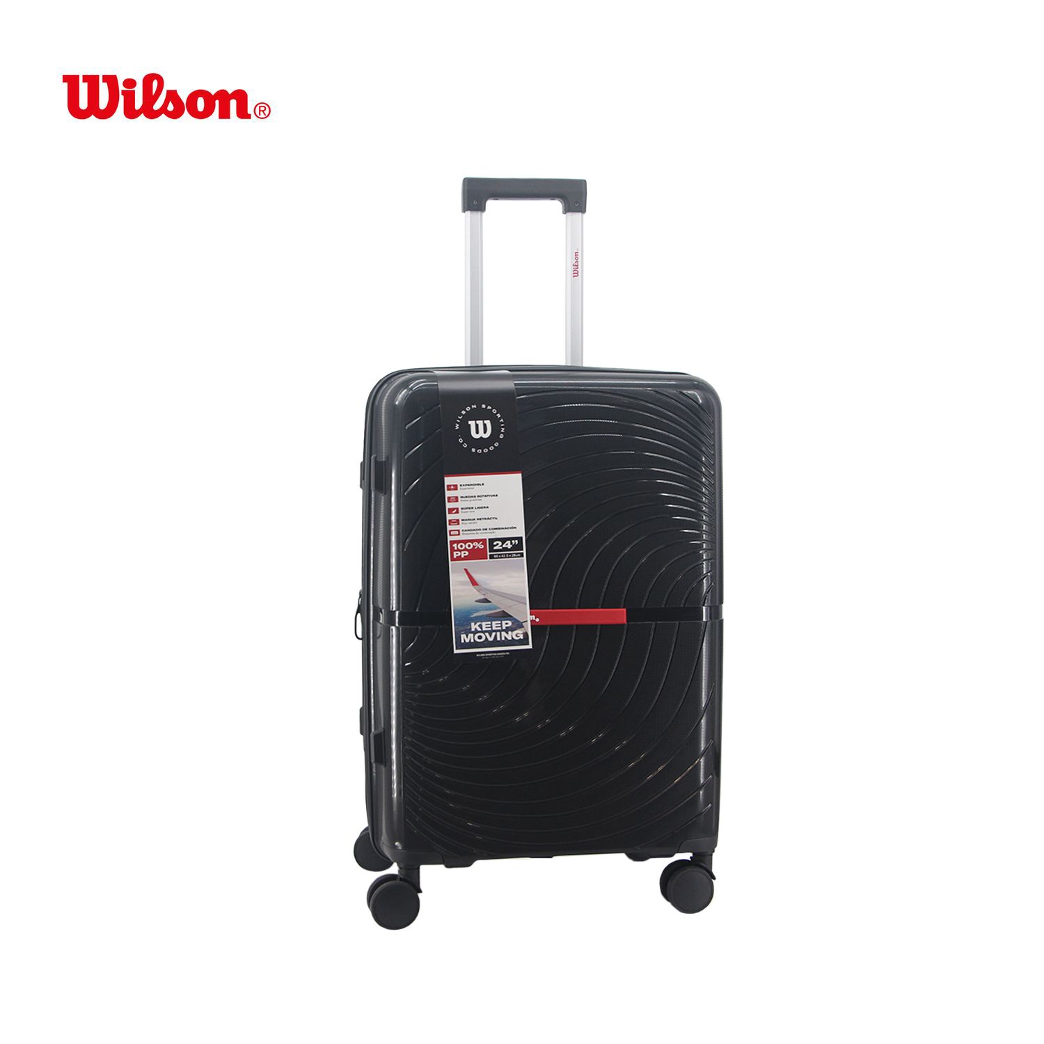 alto 66 cm x ancho 42.5 cm x prof 28 cm •Con cuatro ruedas dobles siliconadas •Carro retráctil e interno •Incluye fuelle expandible y candado TSA incorporado •Material: Polipropileno